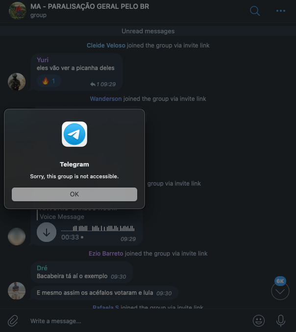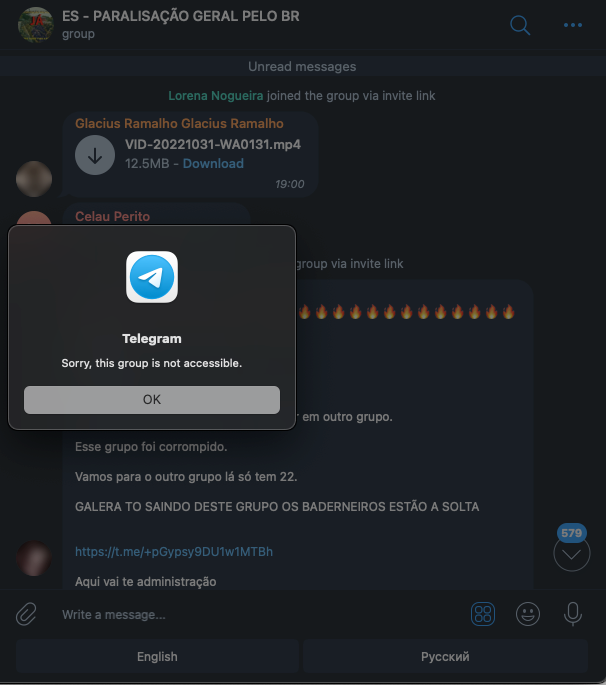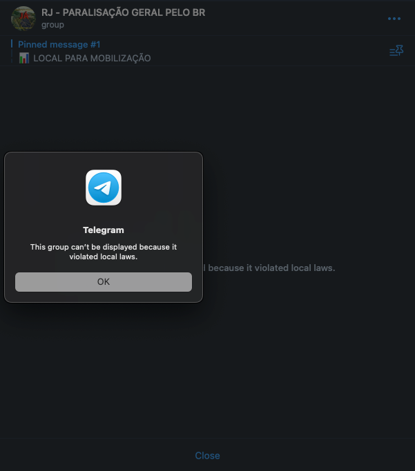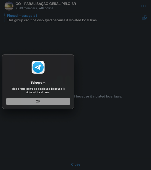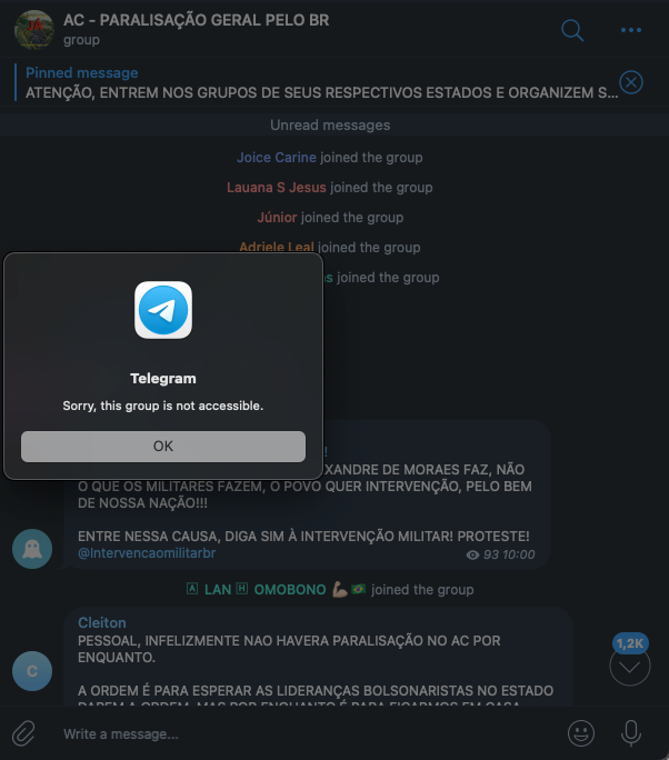 Apesar da ação do Telegram – que ao colocar uma bandeira vermelha em alguns termos (como "paralisação" ou "intervenção") limita a descoberta desses grupos no mecanismo de busca – é possível constatar em tempo real a criação de novos grupos semelhantes.