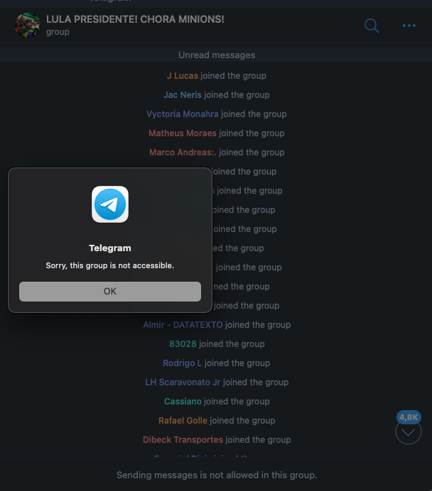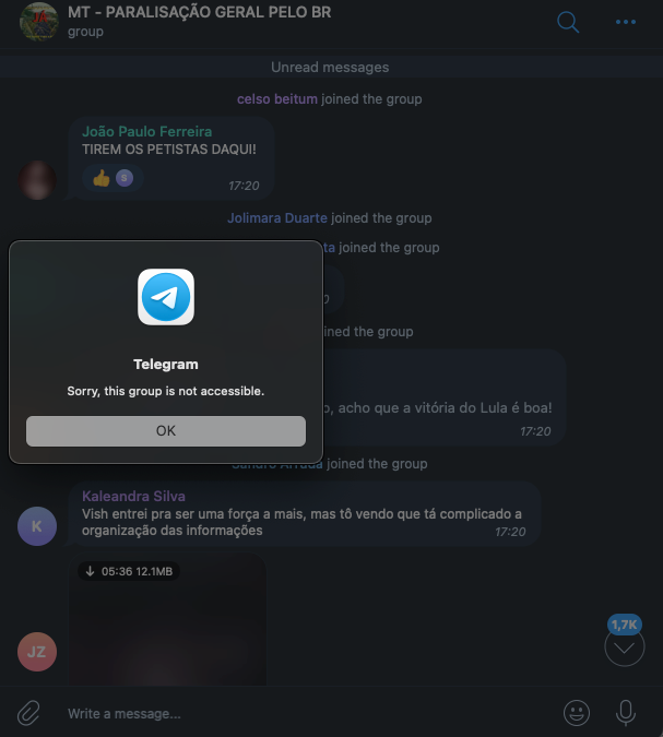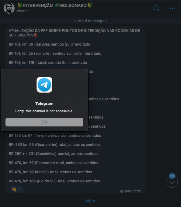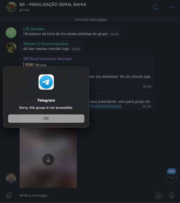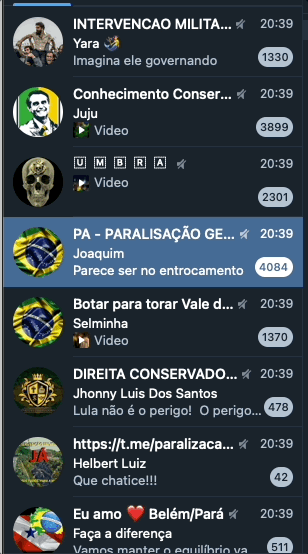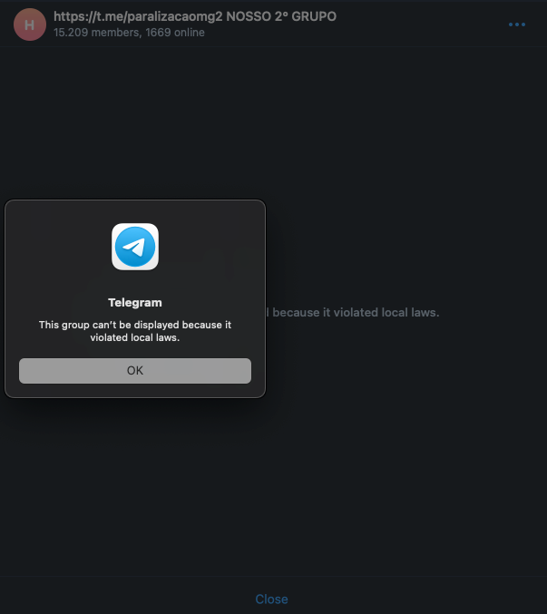 O Telegram derrubou, na noite desta segunda-feira (31.out.2022), dezenas de grupos de extrema-direita que tinham como objetivo organizar algum tipo de paralisação nacional ou desordem em protesto à vitória de Lula na eleição presidencial.