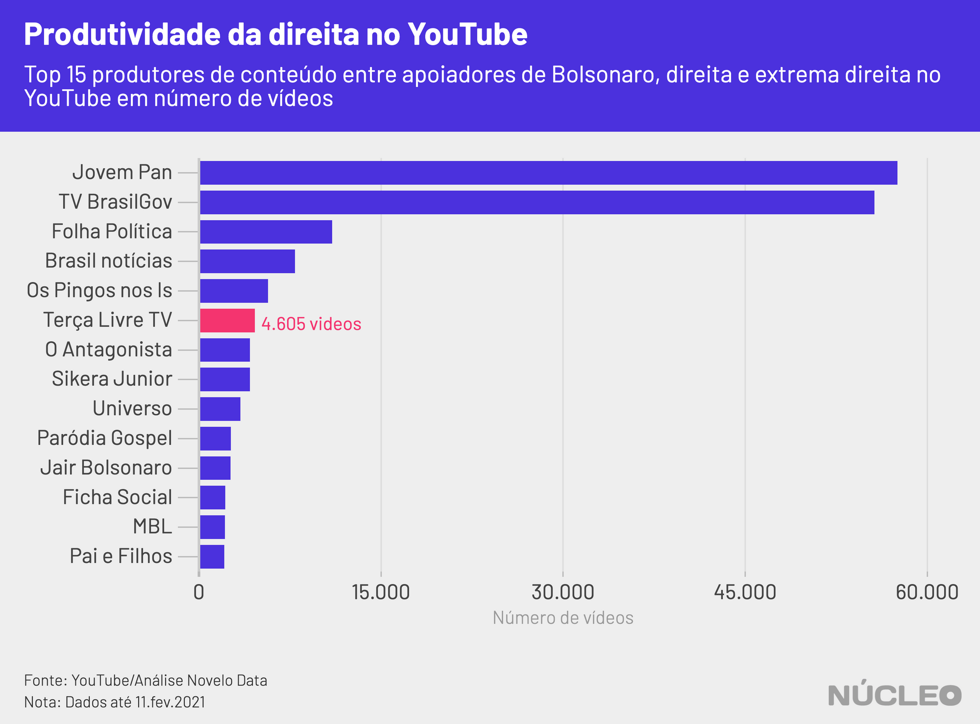 O canal, porém, era um dos que mais produziam: se não considerarmos veículos tradicionais (como a Jovem Pan News) e órgãos do governo (TV BrasilGov), o Terça Livre ficava só atrás do Folha Política e do Brasil Notícias em total de vídeos. Desde sua estreia, em novembro de 2014, foram 4.605 vídeos publicados.