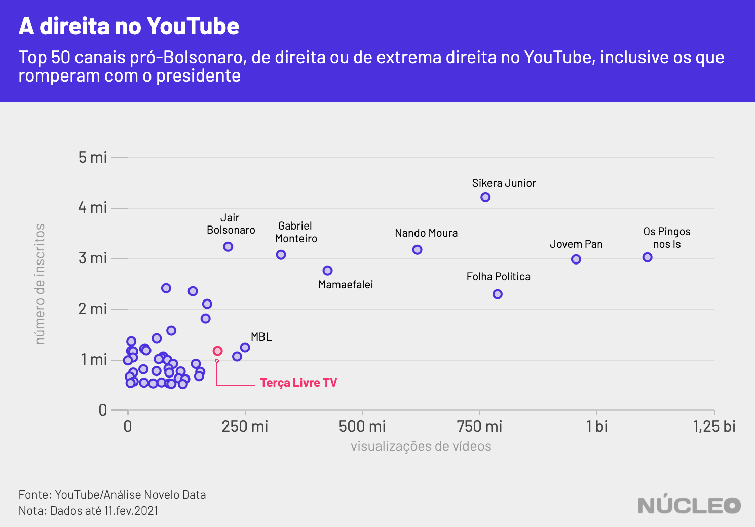 Em volume, o Terça Livre não era o canal de com o maior número de views ou assinantes, segundo o monitoramento que a Novelo Data faz com 174 canais de extrema-direita mais atuantes no YouTube Brasil. Ao ser banido, o canal oficial do Terça Livre tinha uma base de 1,18 milhão de seguidores, o que o colocava na 21º posição do ranking da Novelo, atrás de canais alinhados ao bolsonarismo não tão conhecidos, como Bolsonaro TV (1,37 milhão - não confundir com o canal oficial do presidente) e Verdade Política (1,22 milhão).